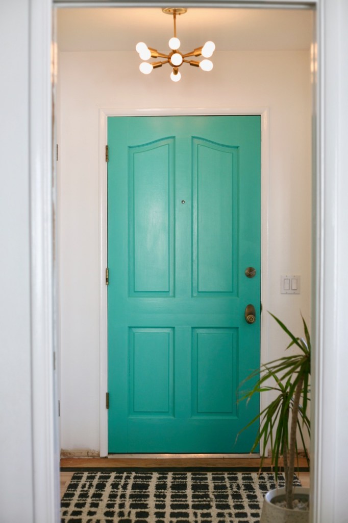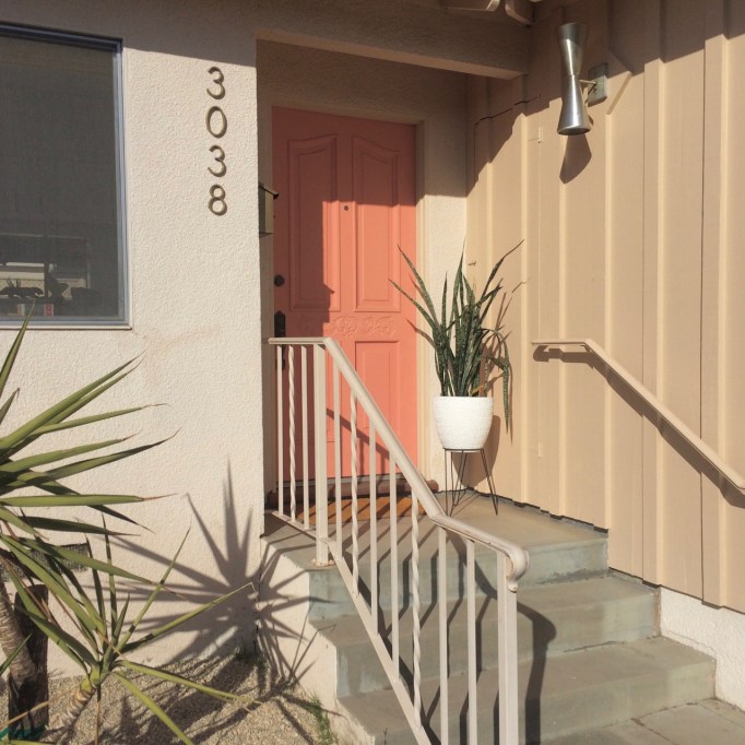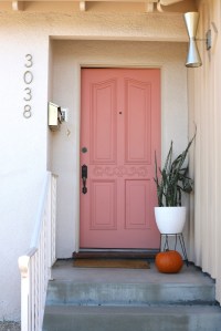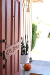 So. Much. Better. Love the new color. Definitely fresh. And the long chime doorbell and button plate are awesome. Nice work. I hear you on the door-hanging delay. Not fun. We took our front door off to sand/paint. We made the mistake of switching-out the hinges. It then took us an entire day to re-hang it. It’s a black art. As for the plant, we have barrel cactus and agave sitting in scorching west-facing sun. They love it. We do have some snake plants outside, but only in north-facing planters.