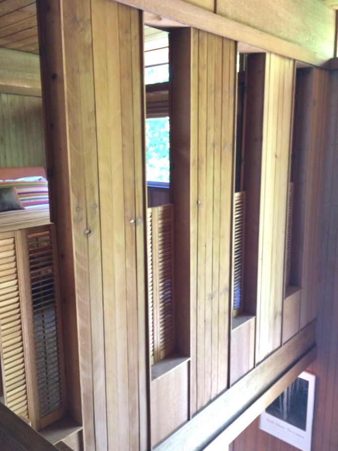 That upstairs/downstairs flow continues in the wall of floor to ceiling shutters in the master bedroom that open to the story below…definitely not great with toddlers roaming in the house, but quite striking otherwise! Today they bottom halves are permanently fastened shut for safety purposes, but I could definitely see “throwing open the shutters to reveal the scary holes in the wall” as an invigorating way to start the day! I love it! What fun!