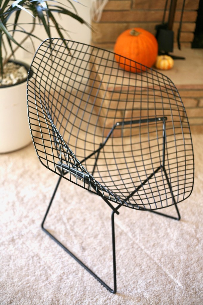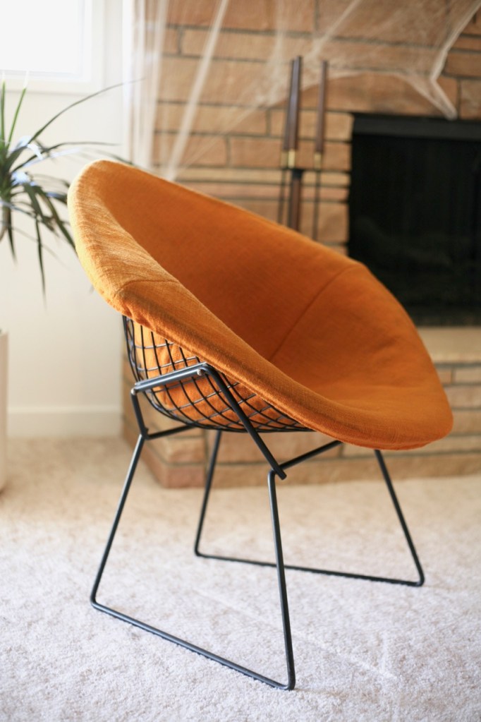 This is an entire post about a chair! I’ve wanted a vintage black and orange Bertoia diamond chair forever and it finally came to me on Craigslist. (If you can’t land a vintage one but want one of your own, they are still in production for so much money at Knoll, or several of companies sell reproductions.) The chairs are insanely elegant in bare metal (my future architect child is super interested in the bent square construction heart) but an orange cover pushes it over the top for me.