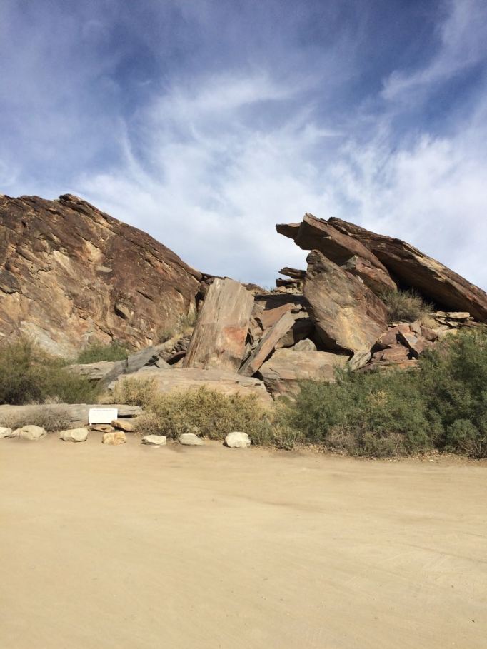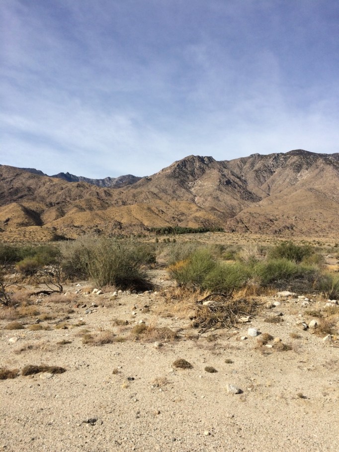 We skipped the largest and most crowded oasis, Palm Canyon, though we did peek at it from the parking lot, opting to hike –using that term sooo loosely- the lush and less visited Andreas Canyon instead. The kids did the “hike” literally in the stream and us grown humans followed the trail next to the stream. I’ve discovered that a family hike through water is infinitely more successful than a regular hike on dirt. The morning we visited was high 70’s/early 80’s but, with the water, I can imagine this being the hike to do on those hotter days when you still want to get out in and see the beauty of the desert.