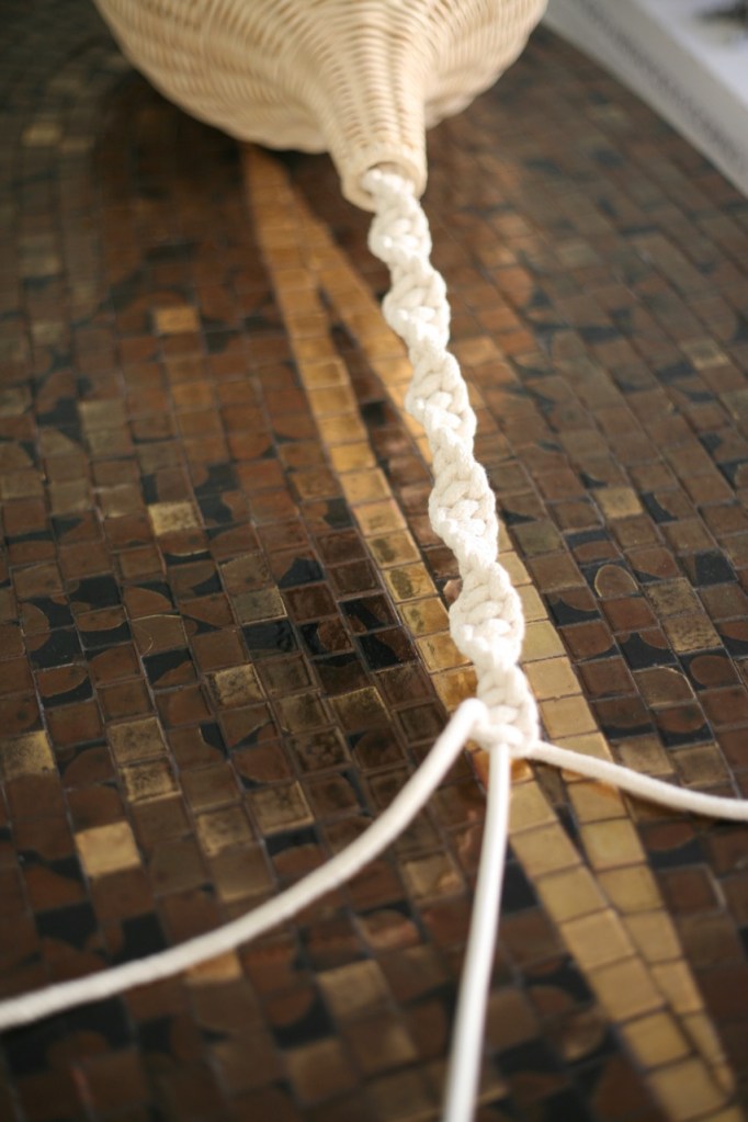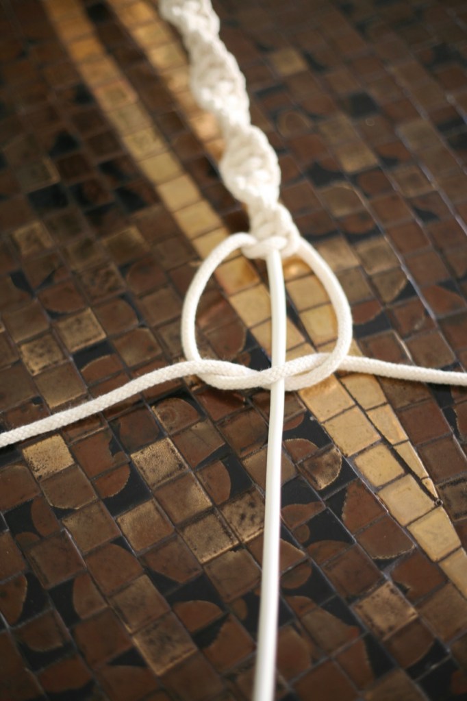 The whole project took about 2 hours and 100 ft of string, yielding approximately 10 ft of macrame. The only troubleshooting I had to do was take care that my string wasn’t twisting and warping the knots, and also that knot tightness was consistent through the whole project for a uniform look. I did a snug, but not too tight knot.