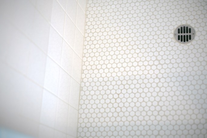 Most pressing when we bought the house, the shower was leaking and needed a new shower pan so we had to rip up the bottom part of our shower/surround for repair. Unable to find replacement blue tile that matched our color, we had our tiler try to salvage what he could of the blue frame around the stall. He somehow successfully removed every frame tile except one without cracking, and that one he just grouted back into place during re-install. The facing couldn’t be salvaged so we had to go with new salt and pepper tile, that nearly matches what is inside, but leaves us with some patchy coloring. The bottom 3 rows of our shower are also that same salt and pepper, an almost match our original. We figured some discrepancies would be better than losing the original shower tile entirely.