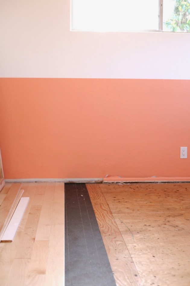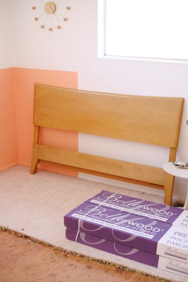 Over Christmas break we easily tackled the yellow kid bedroom over a couple of days (I’ve yet to share pictures because: Lego explosion), and last weekend we knocked out the coral kid bedroom in 3 long but satisfying days, including baseboards and paint…a record for us slow poke DIYers. Photos to come, it’s beautiful! Install was a dream compared to the previous wood, though still backbreaking. How do people do this professionally?