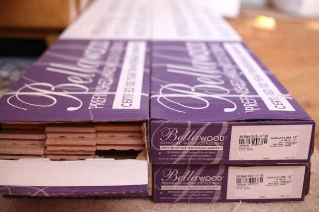 We decided to give our aggravating hardwood floor install another go and we’re SO glad we did!!! We upgraded up our flooring product (unintentionally – an ordering mistake on our part whoops) and the (unintentional) payout was HUGE. Last time around we used Bellawood’s solid 3/4 x 3 1/4″ Natural Maple, so beautiful but a nightmare to install, and this time bought the Select Maple. It was worlds better in quality – straighter, less milling imperfections, easy to install, and almost no trash boards. A wood flooring success for once in our lives!