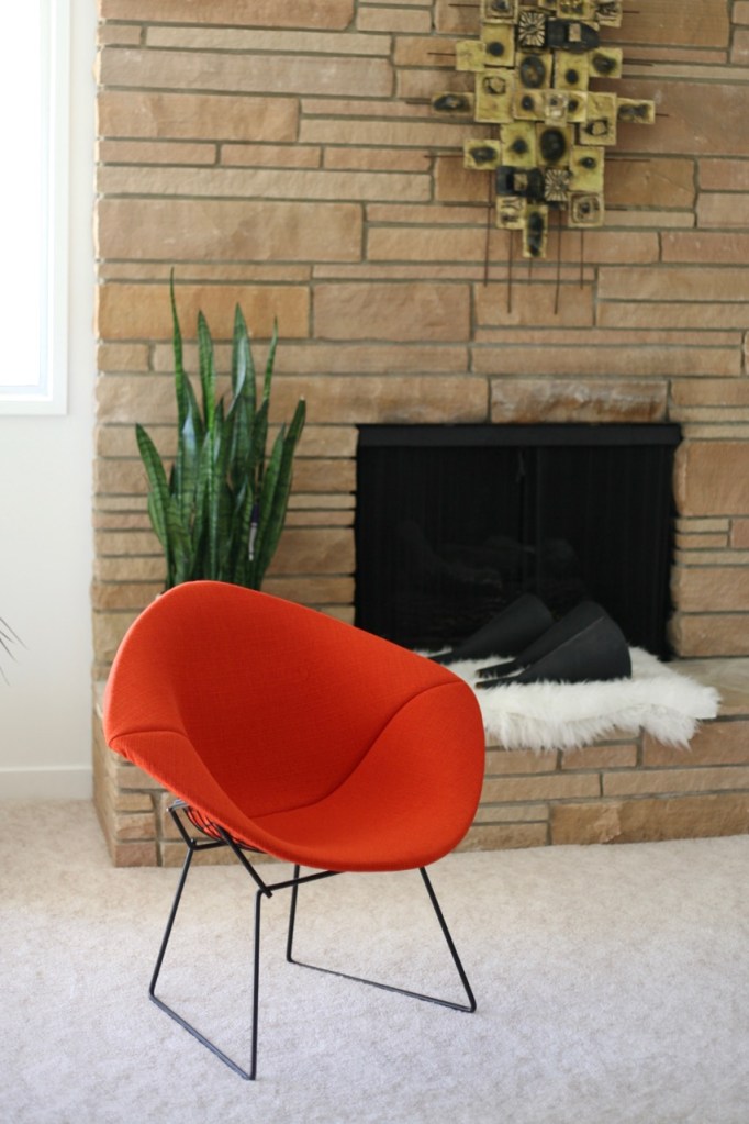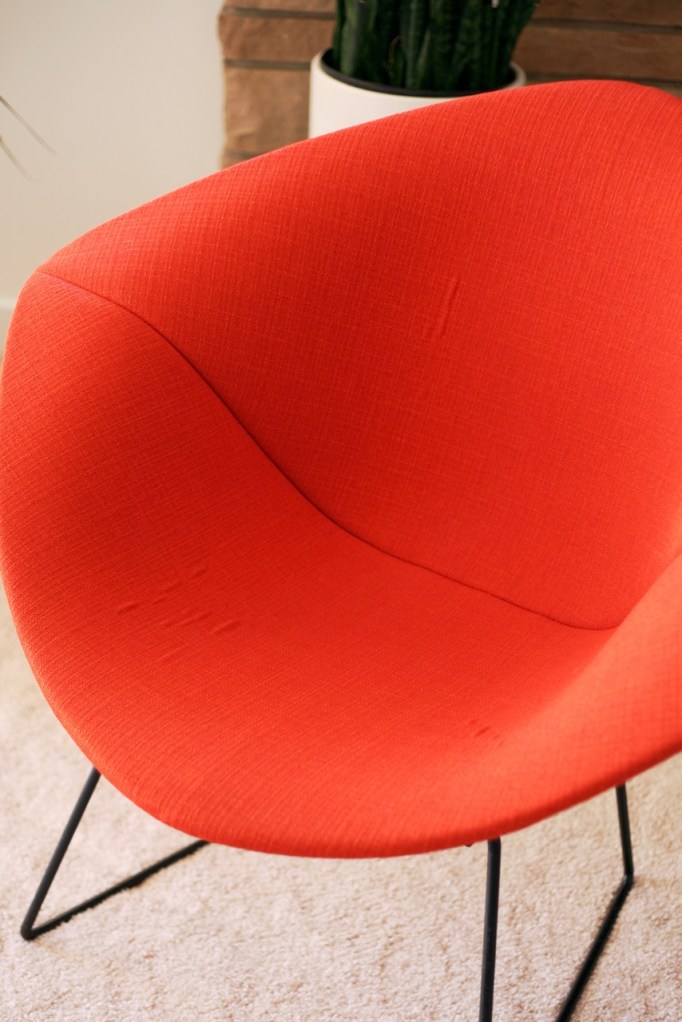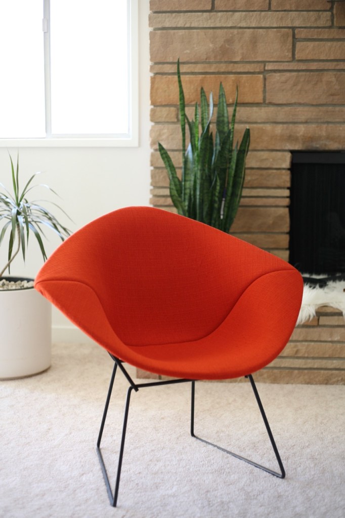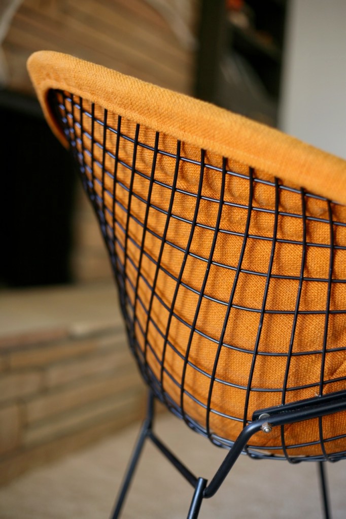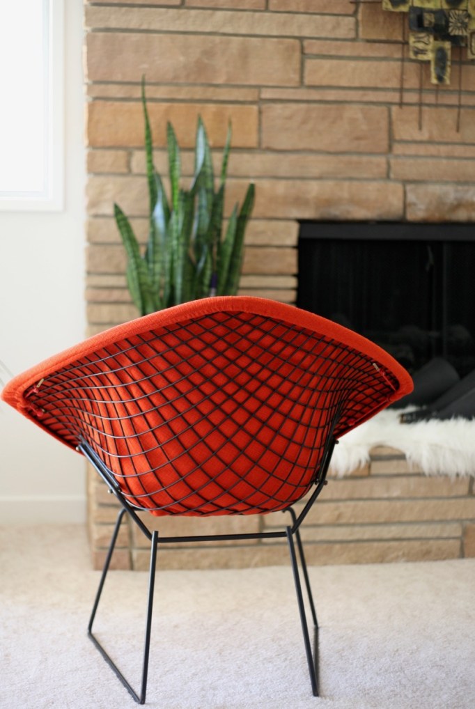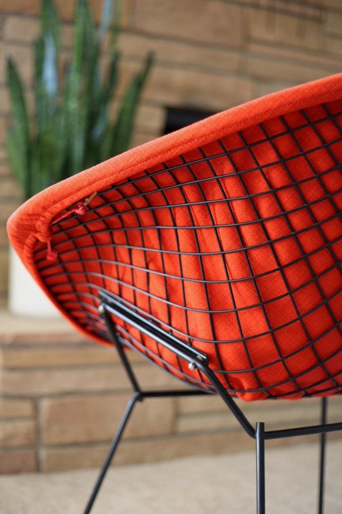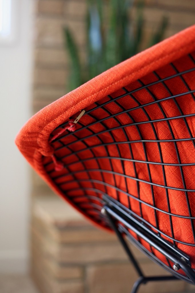 I think I need to start a blog post category just called “Chairs and their Covers.” I have a problem. You may remember that I bought this dream vintage Bertoia diamond chair a few months ago but the pumpkin-orange original cushion cover was unexpectedly unsalvageable. It was immediately clear that this was a job beyond my sewing abilities/wants. I thought about having an upholsterer do it but I wasn’t at all excited about putting forth the effort of finding fabric on my own or getting on my upholsterer’s long list or paying the high price I was expecting. Are you catching the lazy vibe I’m throwing down? Clicking buttons on a computer sounded so much better so on the suggestion of some IG friends, I purchased a reproduction cover from a seller on eBay (another option is this slightly more expensive option on Etsy). I’m here to share the details in case you are A.) in the same boat B.) lazy and C.) can’t afford a billion dollar replacement from Knoll!