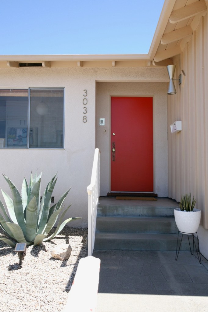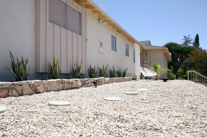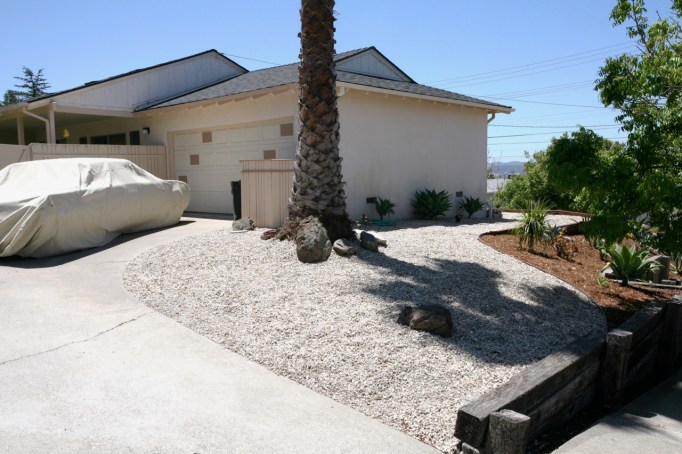 Our choices reflect two landscaping goals: “as zero-maintance as we can get” and as free as can be. Low water landscaping is important in our state, and much of the west, so thankfully we both love desert modern landscape design and ran with that. Faking Palm Springs til we make it. Everything in our yard is a succulent and will not need regular watering after getting established over the past winter. I will probably hand water a few times on scorching days this summer just to be safe, but I don’t expect to do any watering past that. Rain water only. We’re irrigation free besides our small backyard lawn.