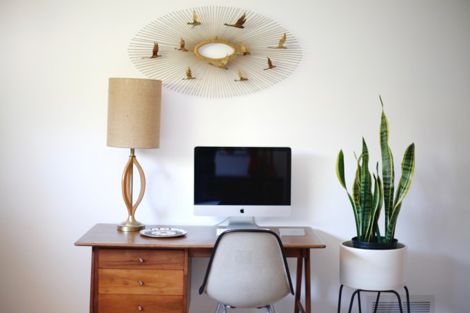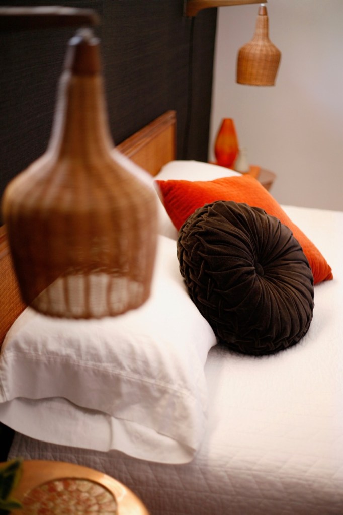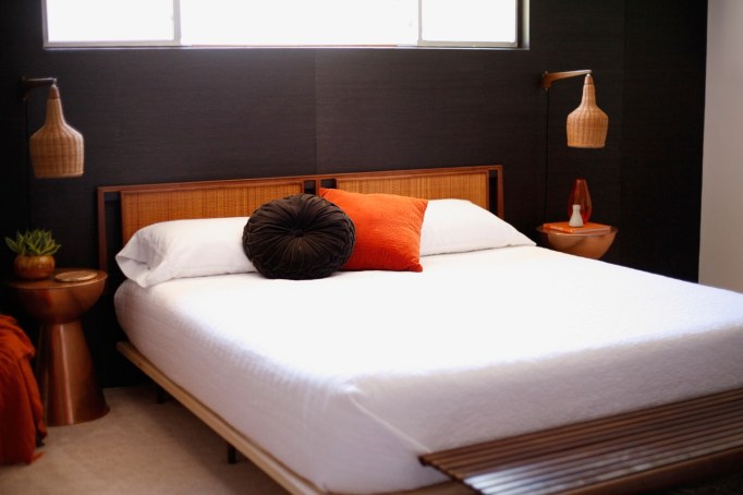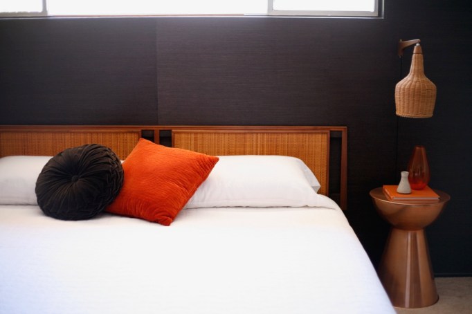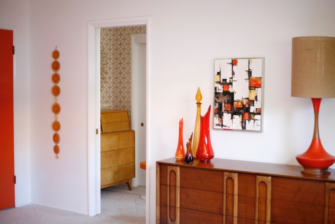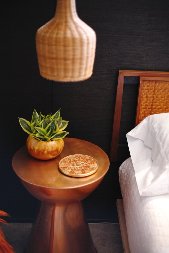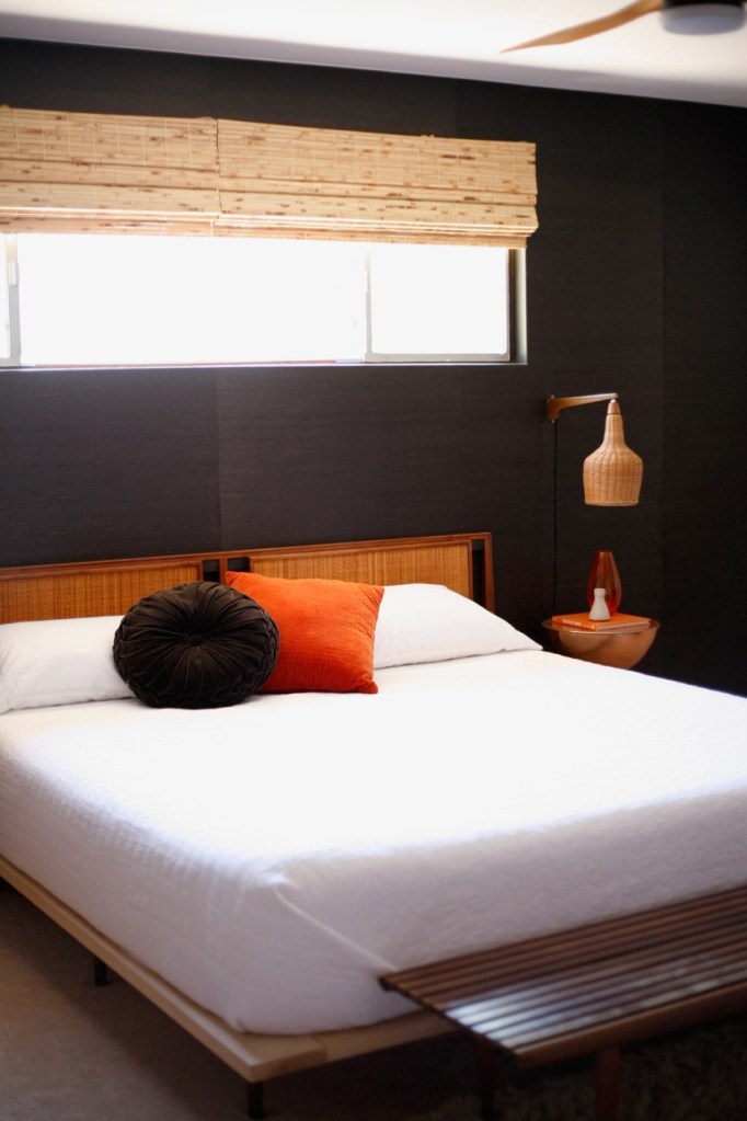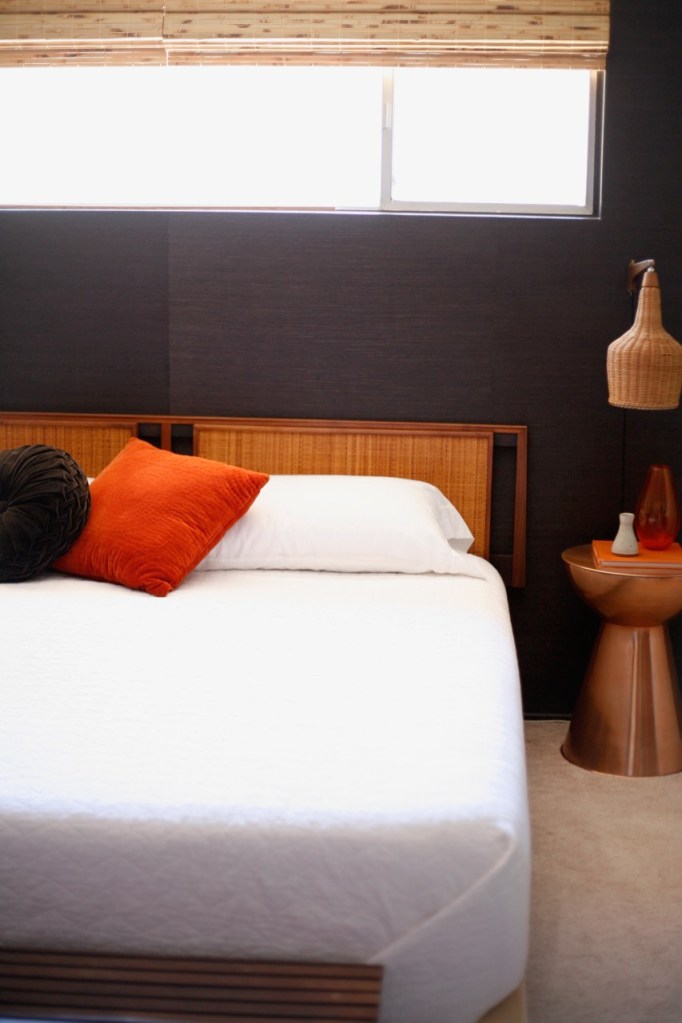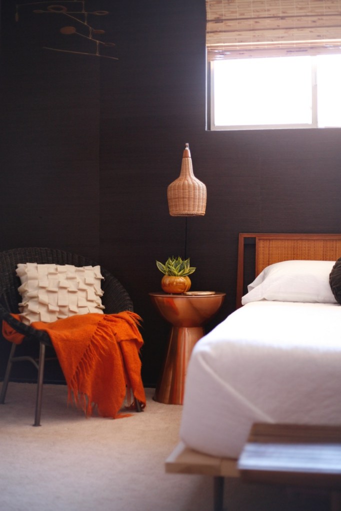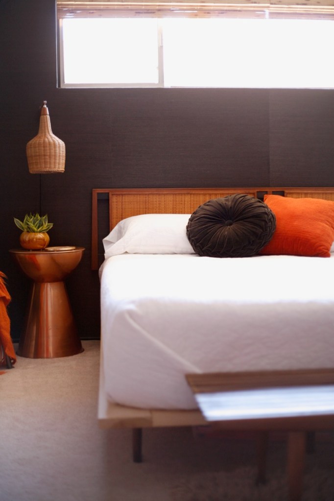 A few months ago I finally got around to hanging grasscloth wallpaper in our bedroom and THE IMPROVEMENT CANNOT BE OVERSTATED! It just feels incredibly warmer, even though the wall was painted the same shade before. I worked up the courage to drill into the wallpaper to rehang our sconces so, besides future wood flooring installation that we are procrastinating on, the place is pretty darn done. Not every room comes together like you think it will, but this one is everything I ever dreamed it could be: simple, cozy, bold, and weird. Orange and black probably aren’t most people’s neutrals haha, but this room is my literal comfort zone in life!