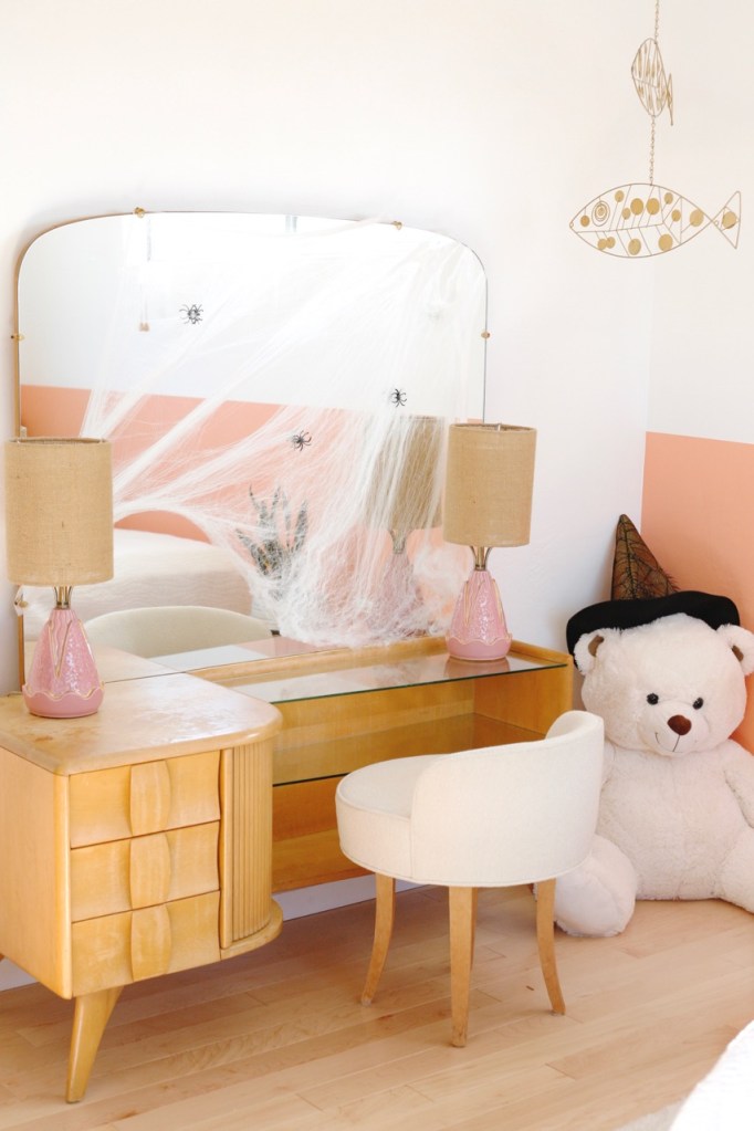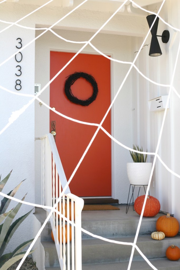 Spider webs are becoming my favorite Halloween addition. Big impact with minimal storage. (Do you notice the couch swap I am experimenting with? The colors are working.)