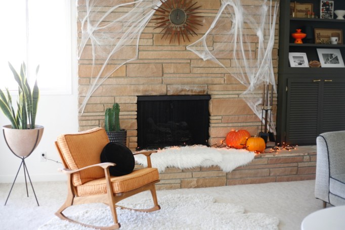 The den was given Halloween decoration crumbs, but look how festive!