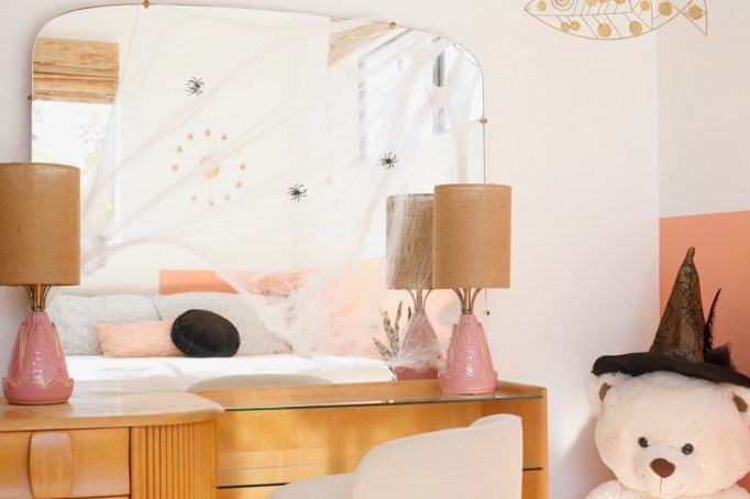 The den was given Halloween decoration crumbs, but look how festive!