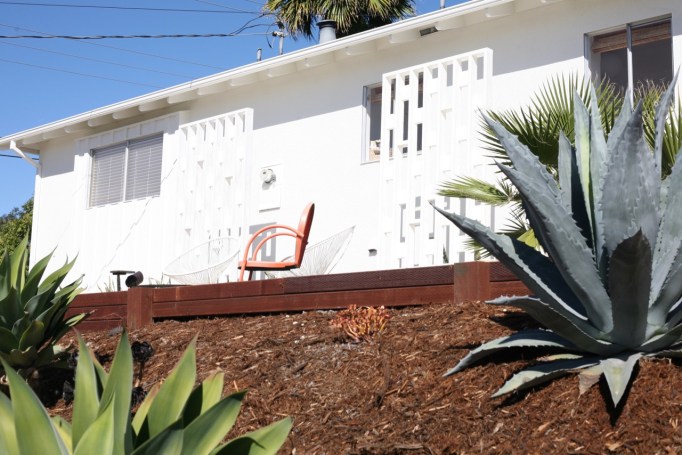 Around the side yard is where things really got thrilling! We know this fence was rotted and we keep doing quick fixes on it hoping to squeeze another year out of it. But this time the quick fix revealed the obvious, but one we oddly never considered, reason for the rot: major termite damage. CALIFORNIA I LOVE YOU EXCEPT YOUR TERMITES. If this sounds really irresponsible, it kinda is, but I just painted over the whole thing like nothing is happening because I need a few months before I can deal with this. Went with a dark charcoal black and I love it. It makes the fence (and my termite problems) disappear instead of looking like a continuation of the longest rambling ranch ever built.