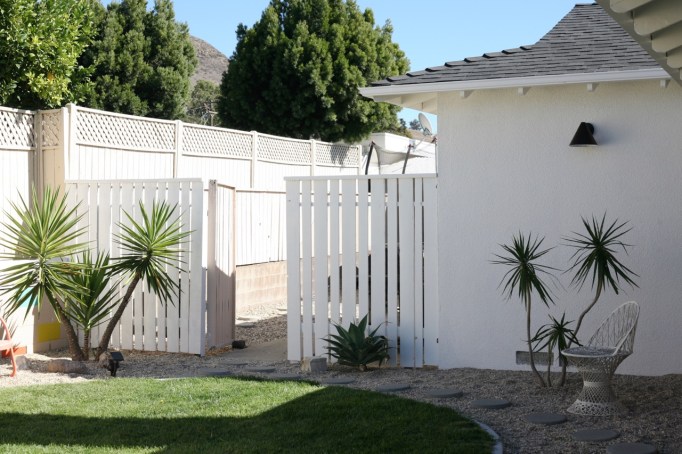 Now on to this other fence between our backyard and side yard. Of course, it also needs repairs. This time, a water damaged gate. (But look how fresh and crisp!)