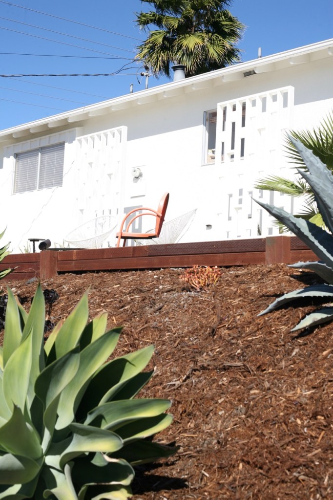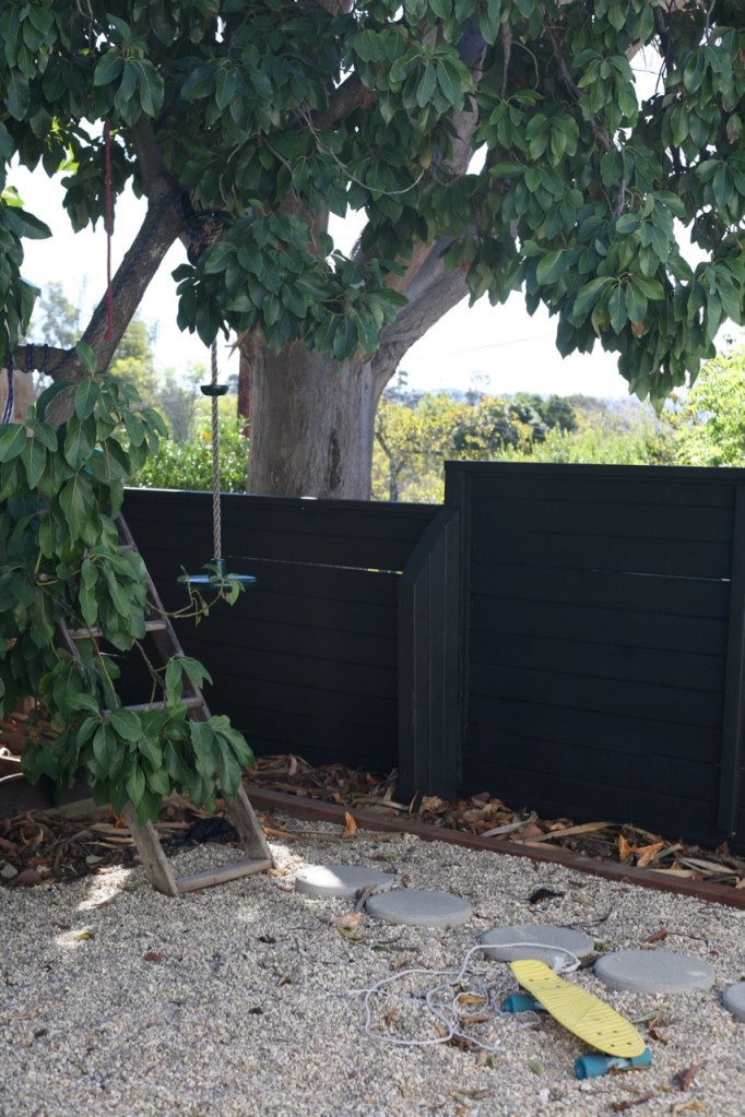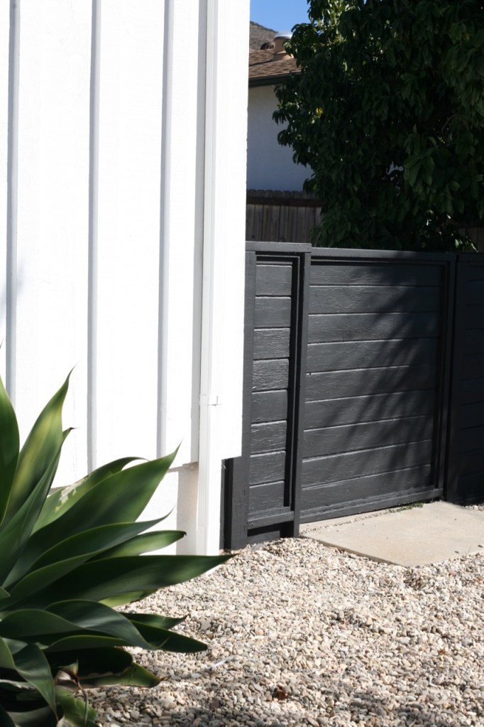 Around the side yard is where things really got thrilling! We know this fence was rotted and we keep doing quick fixes on it hoping to squeeze another year out of it. But this time the quick fix revealed the obvious, but one we oddly never considered, reason for the rot: major termite damage. CALIFORNIA I LOVE YOU EXCEPT YOUR TERMITES. If this sounds really irresponsible, it kinda is, but I just painted over the whole thing like nothing is happening because I need a few months before I can deal with this. Went with a dark charcoal black and I love it. It makes the fence (and my termite problems) disappear instead of looking like a continuation of the longest rambling ranch ever built.