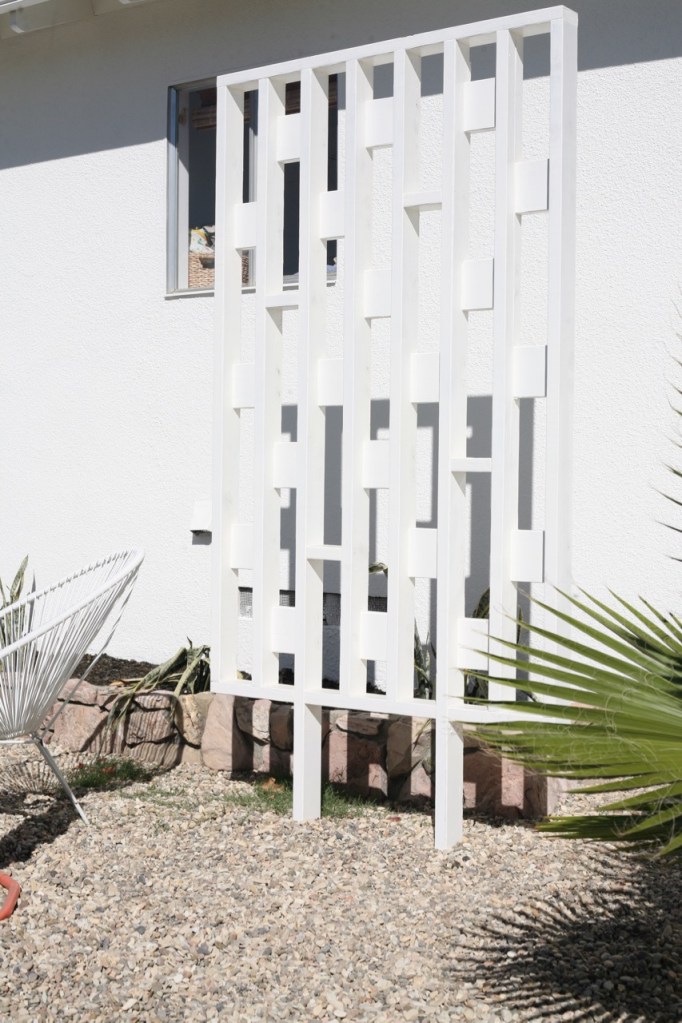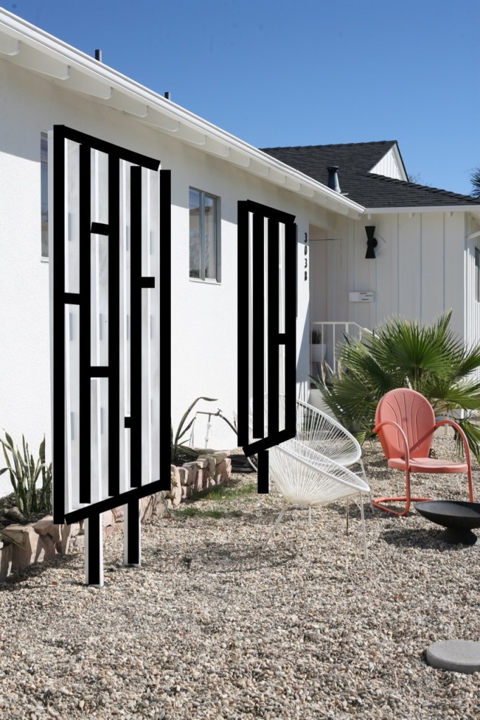 Lastly, I’ve been so stalled on these screens. I was set on painting them black but then decided to go with textural white, and primed them accordingly. But they are so lost from the street in the sea of white when I need them to break up the long stretch of house, that I’m thinking of going back to the original plan of black. Pardon the weeds and random chair collection.