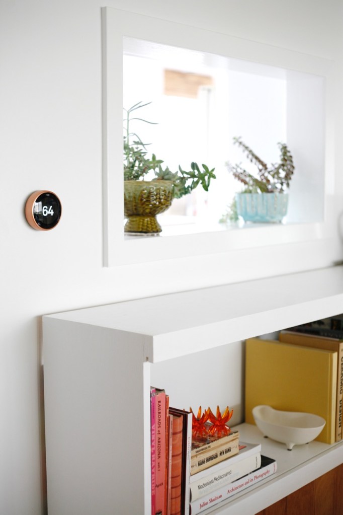 *I have to add possibly a controversial opinion here: the trim piece that comes with the Nest is an abomination and makes me question the aesthetic commitment of this company. What the heck even? Personally, I think you need to patch up your old holes before you hang a piece-of-art-thermostat on your wall. Obviously. But if logistics call for a trim piece, there are cool after market wall plates that play up the sleek, minimal, metallic vibe of a Nest. DON’T PUT THAT UGLY PIECE IN THE BOX ON YOUR WALL, k????
