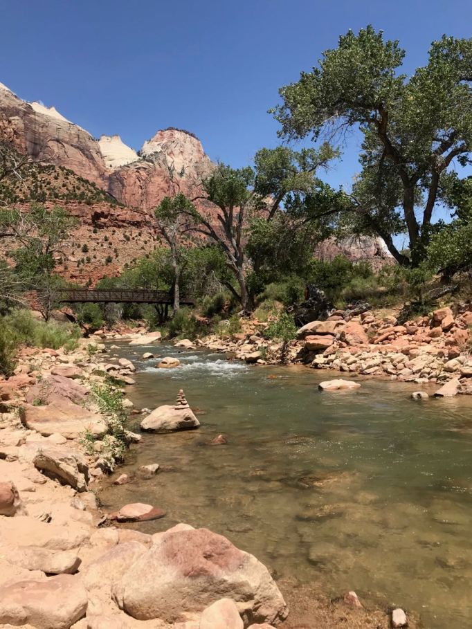 Itinerary: We only did one night in Zion, but spent the night before in nearby St. George and were in the park by 9am, giving us one full day and night and half of the next day. We planned on hiking the Narrows for most of that first day, something my husband and I have done before but an experience our kids have never had. However, there was a flood advisory so we instead swam in the Virgin River along the Pa’rus Trail, played chess in the lodge, did some little hikes (Lower Emerald Pools and Weeping Rock), and watched the deer on the lodge lawn. We rearranged the following day to include a shorter Narrows hike, only to wake up to a swollen twisted ankle on one of the kids. Ugh, such a bummer. But we will be back. On our way out, we discovered an awesome swimming hole and wished we spent more time there.