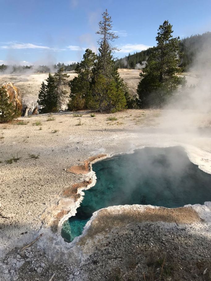 Day three itinerary: We did the first Old Faithful Inn tour of the day (HIGHLY RECOMMENDED and free) on the morning of our third day, then drove back up past Norris Geyser and covered the area south of that that we had missed the day before. We also spent some time at a not-always-map-marked swimming hole in the Firehole Canyon Drive loop. (Fun story, 15 years ago my husband lost his wedding ring in this spot and we thought it was gone forever. My husband shouted out “$100 to anybody that can find my wedding ring!” Some locals with snorkels got to work and somehow found his ring in the rapids within the hour. Best $100 ever spent!)