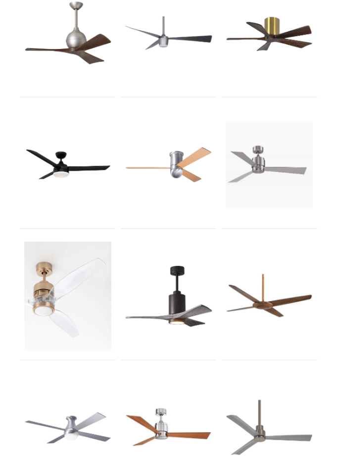 It’s been a few years since I rounded up some good looking ceiling fans, so today I’ve gathered a massive, updated list of modern, sleek, unoffensive, mid-century-friendly fans. I even found a few in brass FINALLY! Some are in the $200 range while some surpass the $500 mark. If you are wondering if we still love ours that I painted black, we do very much, but oh man that brass and walnut one below is tempting. Hope this helps if you are on the hunt!