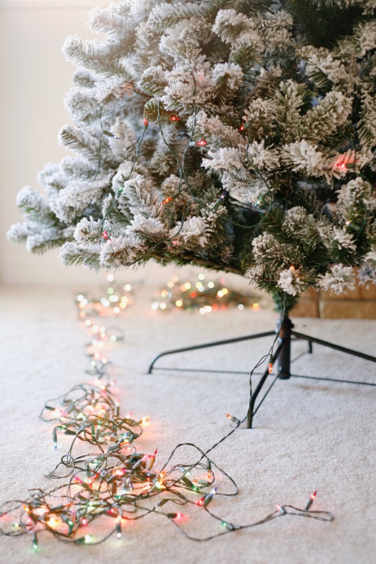 Now on to my tree! This cutie is the King of Christmas unlit flocked 7′ Prince. Flocked trees are the ultimate in Christmas nostalgia for me and I love the opportunity to bring that throwback feeling into our home. My grandma had a massive flocked tree every year and finding flock chunk remnants around the house well into Spring thrilled me as a kid! Growing up in Southern California, the novelty of a snowy-looking tree has never worn off.