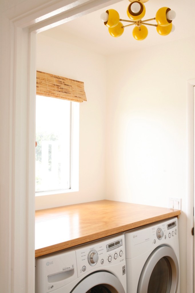 I previously shared this DIY plywood laundry counter, so check this post out if you want more info!