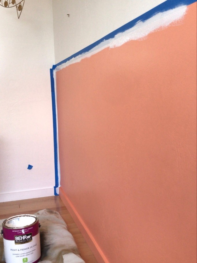 This will probably be the last time this room makes an appearance on here, as my kid is getting older and I want them to go wild in their own direction for their space. This iteration is shared with their permission to show how easy it is to switch up the color on a color blocked wall – it was previously peachy pink – for a completely different feel with only a quart of paint and 2 quick coats!