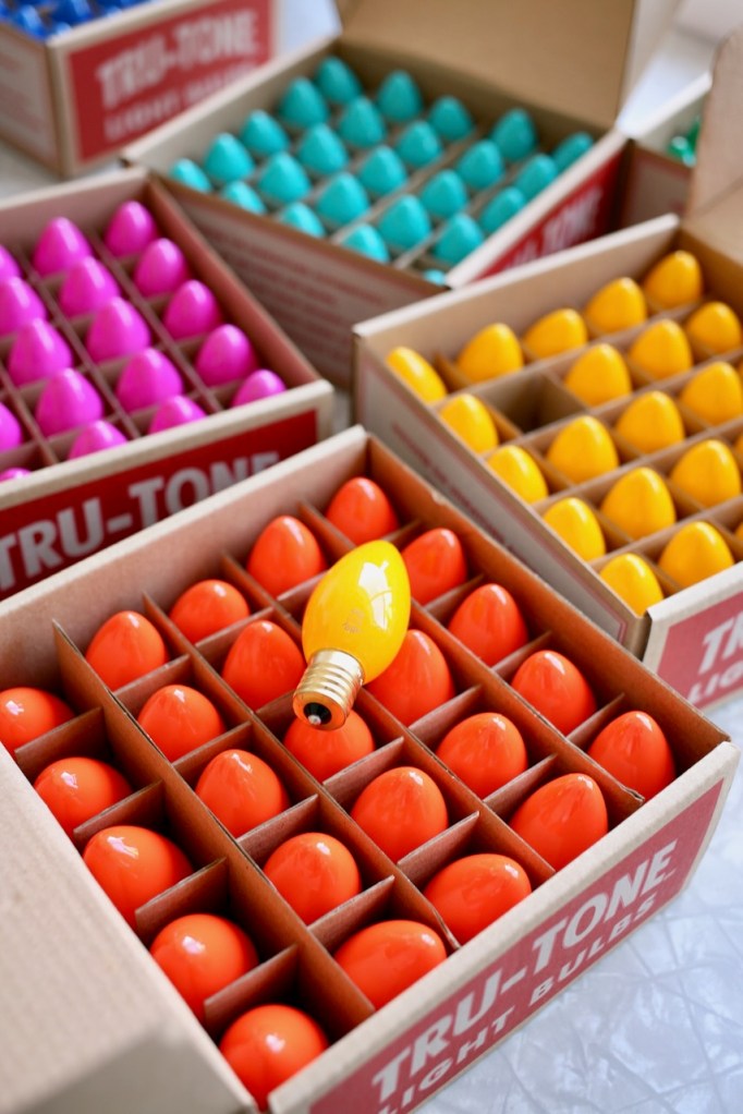 I went with the Classicolor ceramic style bulbs and though the classic red/green/blue/orange/white color mix is tempting, I could not pass up yellow, turquoise or pink!!