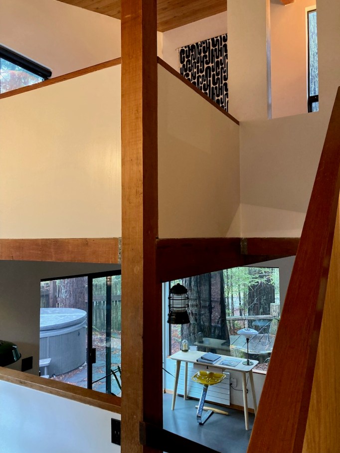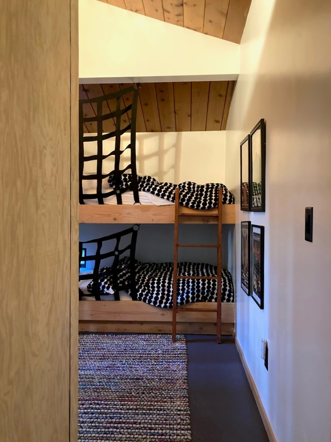 We had only previously passed through Sea Ranch on our way to other destinations, so it was nice to stop and spend a few quiet days exploring on foot. The highlight for sure, and the architecture we really got to soak up, was the cabin we rented, one that has long been on my vacation rental wishlist: the Esherick Mini-Mod #3. Designed by Joseph Esherick in 1967, the cabin was one of several built to be demonstration homes for prospective buyers. Though only 683 sf, the home lives large. The original architecture and thoughtful updates by the current owners are quite inspiring. Super graphics will delight design nerds and the Endor references throughout will delight Star Wars fans. Plus, and maybe best of all for without this our trip wouldn’t have happened: the rental is very dog friendly!! Rusty came along and happily picked up every stick in the forest.